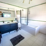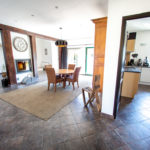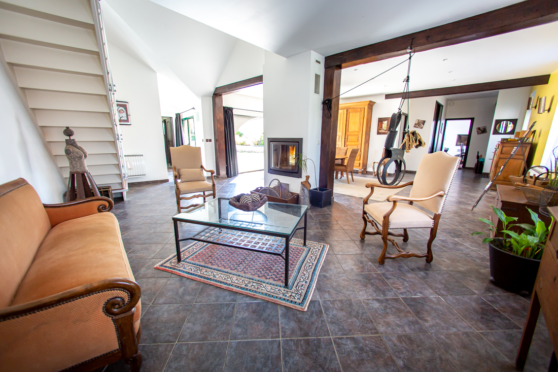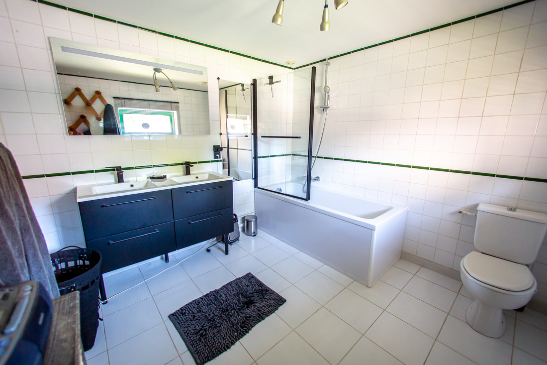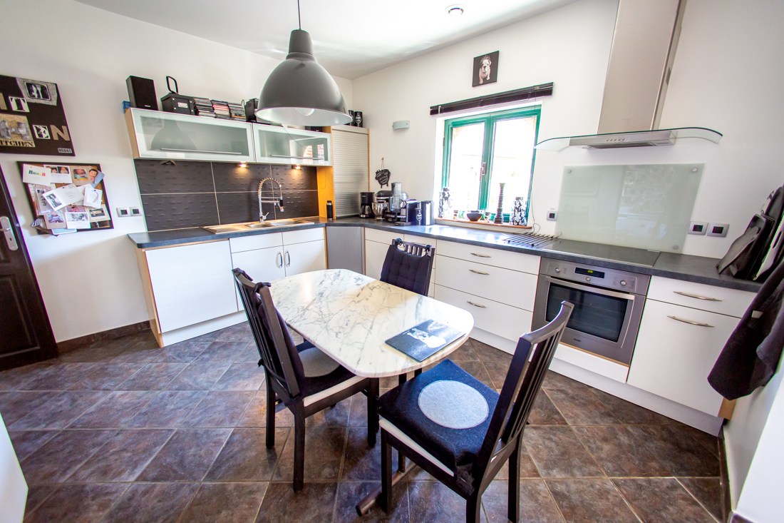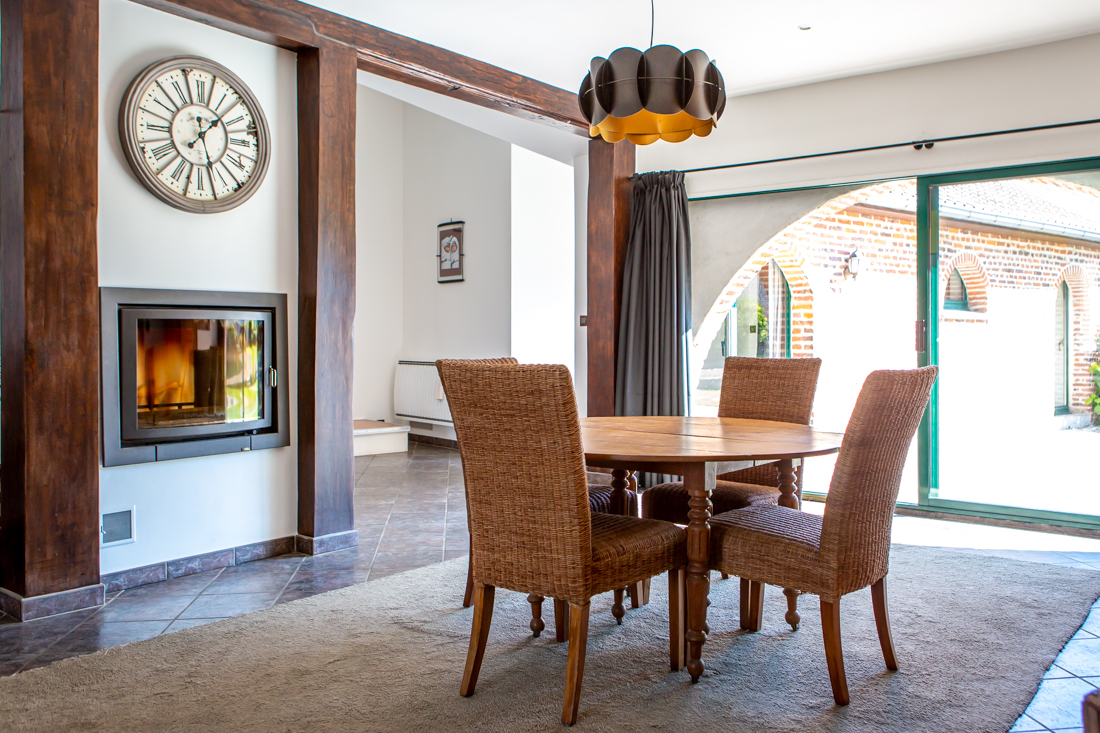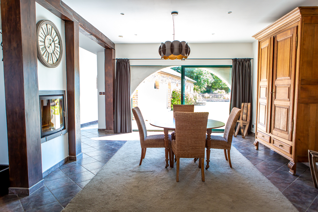– REZ-DE-CHAUSSÉE : hall d’entrée ; séjour salon salle à manger avec poêle à bois double foyer et baie vitrée coulissante sur le jardin ; cuisine équipée dînatoire ; deuxième salon salle à manger avec parquet ; suite parentale avec chambre, salle de bain avec baignoire et pièce dressing ; 2 WC