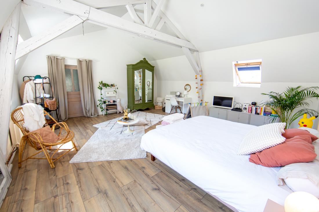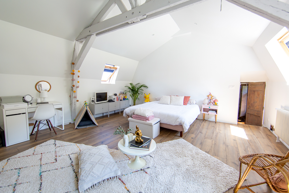 – Étage 2 : grande chambre, comble aménageable bel espace de 50m2