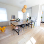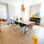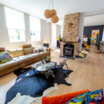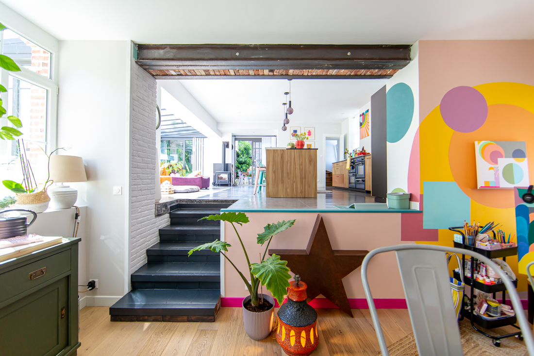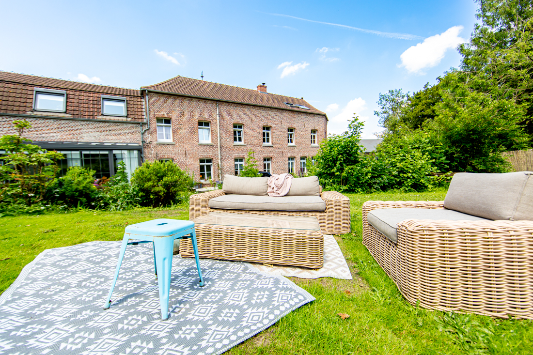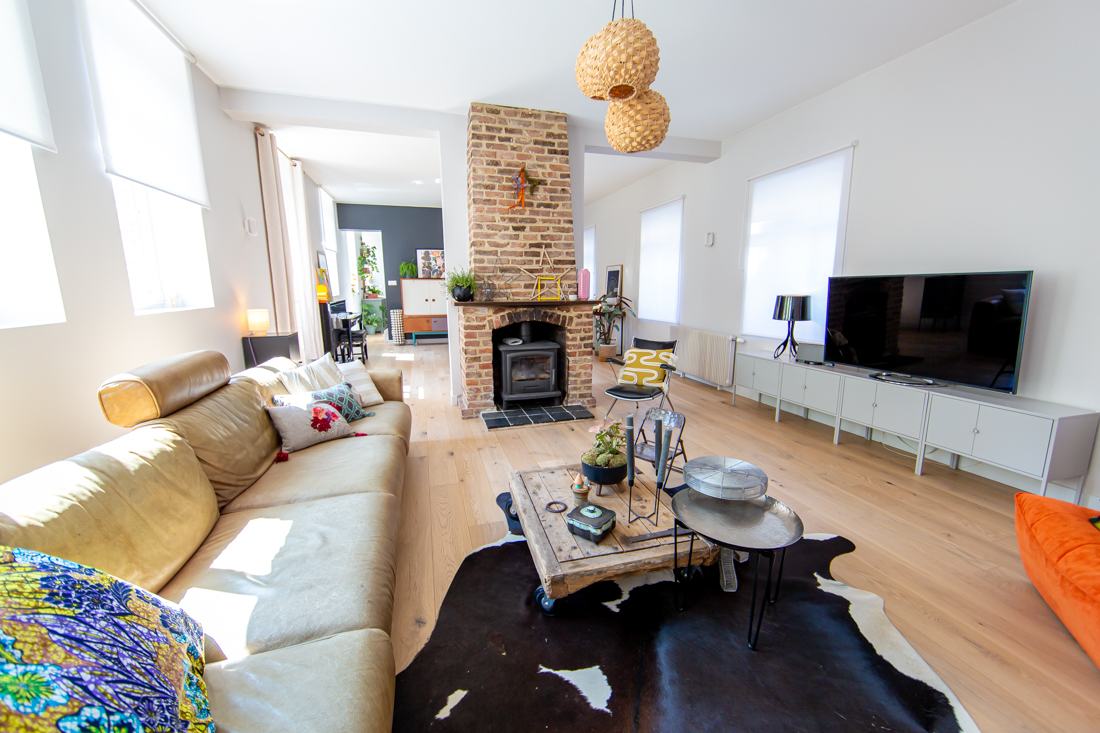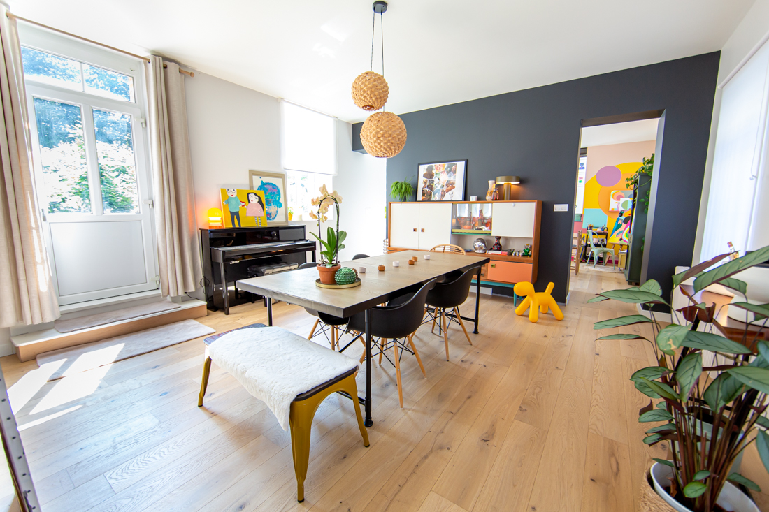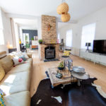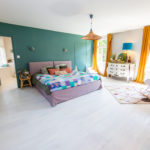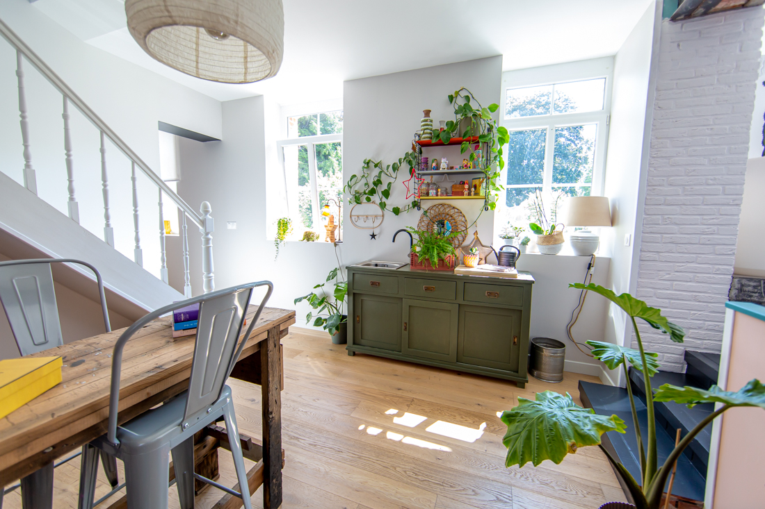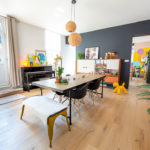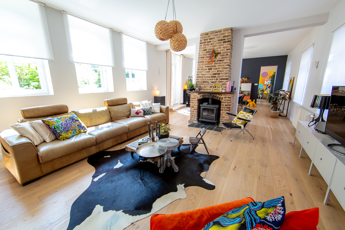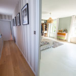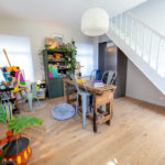 – Rez-de-chaussée : hall d’entrée ; salon avec poêle à bois ; salle à manger ; séjour avec vue sur le jardin ; cuisine équipée avec large îlot dînatoire ; second séjour avec poêle à bois ; WC ; accès par double distribution à l’étage