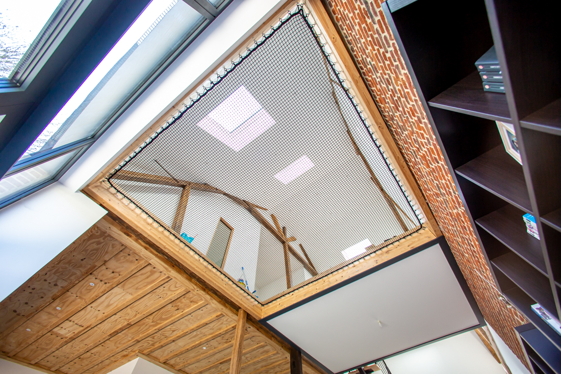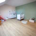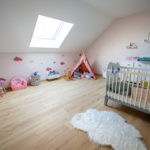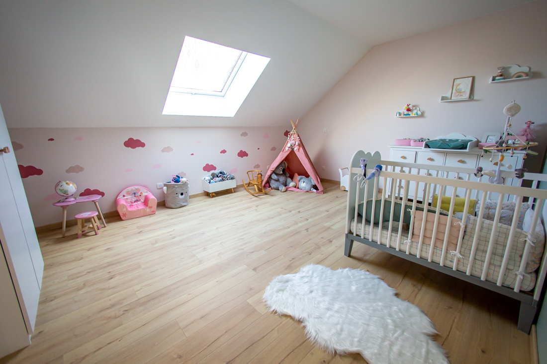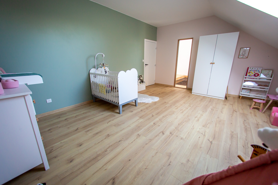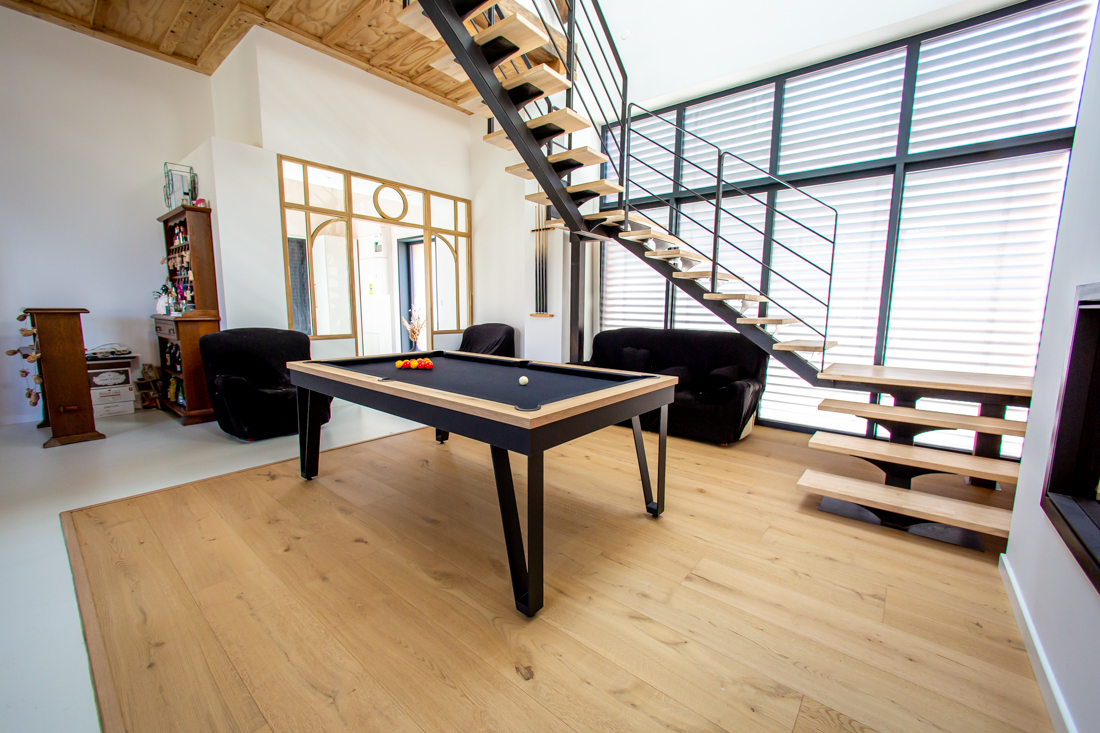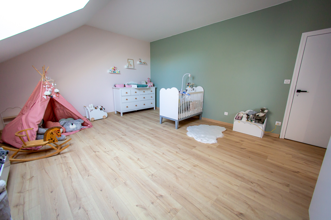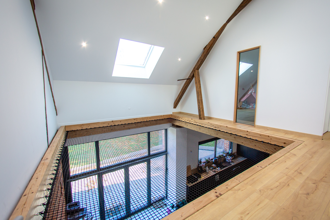 – Étage : palier avec rangements, espace jeu filet tendu ; 3 chambres de 23m2 ; salle de bain avec baignoire ; salle de sport ou autre de 31m2