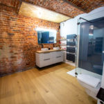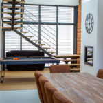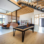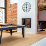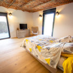 – Rez-de-chaussée : hall d’entrée ; grande pièce de vie avec salon, salle à manger, coin détente, cuisine équipée avec îlot dînatoire, insert double foyer ; salon avec plafond voûté ; chambre avec accès terrasse ; salle de douche ; cellier / buanderie ; WC