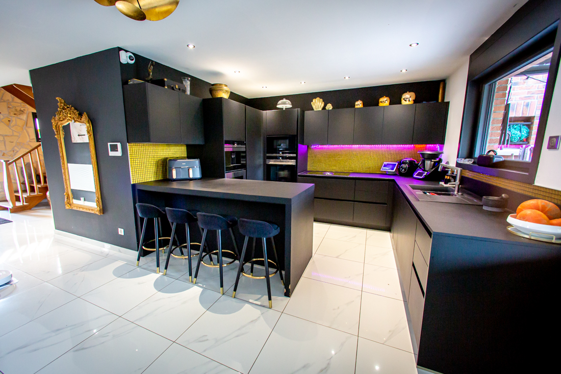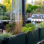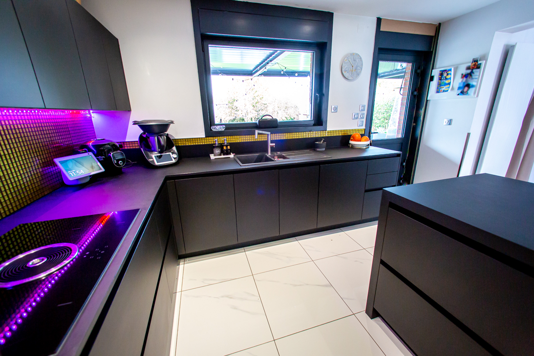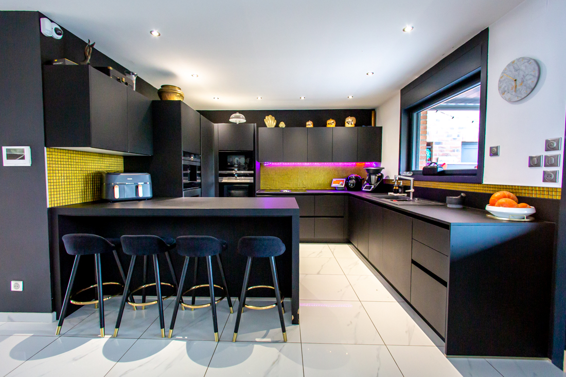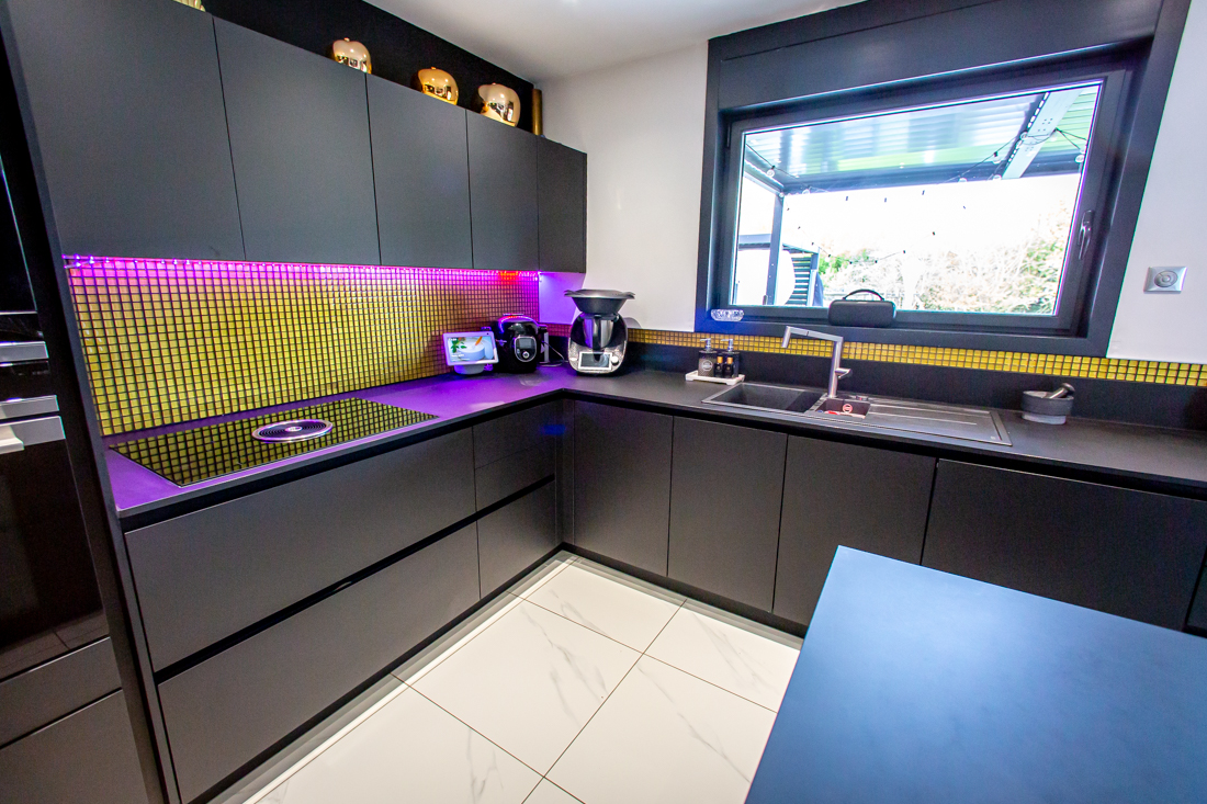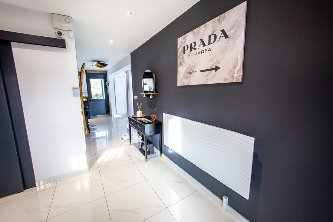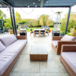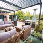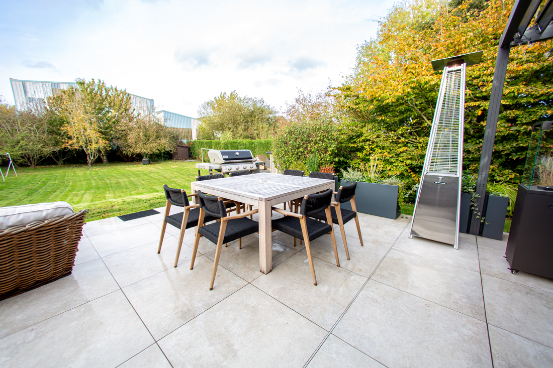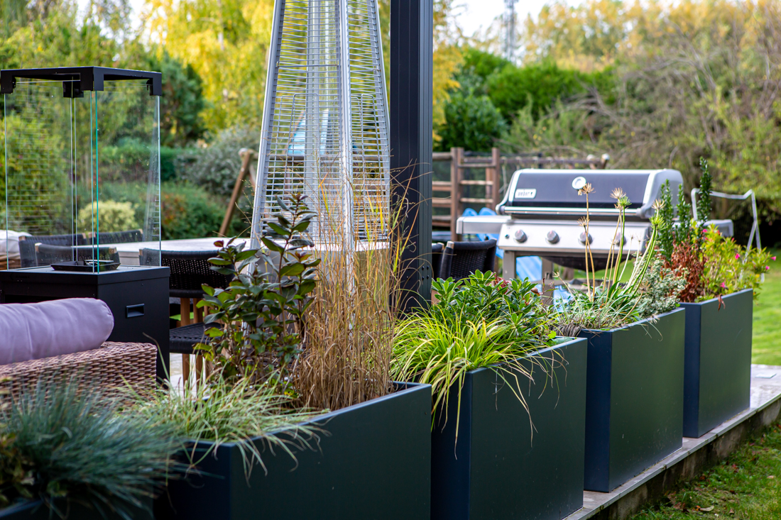 – à l’arrière : grande terrasse exposition Sud ; 3 pergolas bioclimatiques ; SPA ; jardin pelouse ; air de jeu enfants