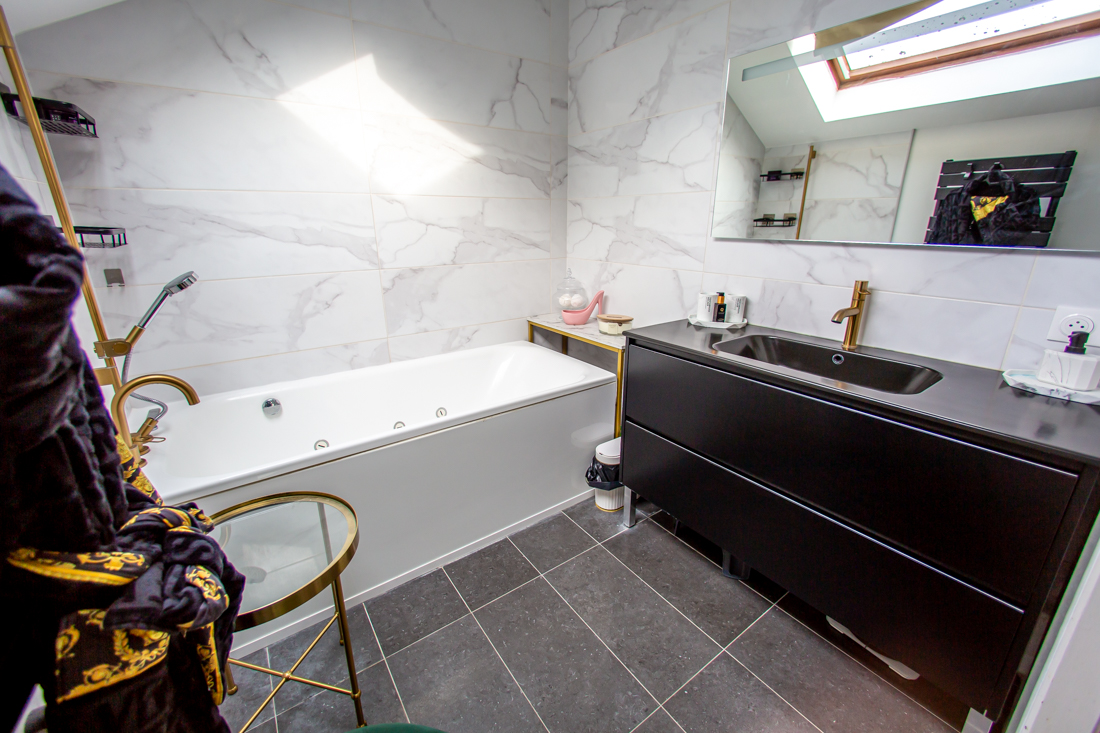 – Étage : 3 chambres ; bureau ; salle de bain avec baignoire