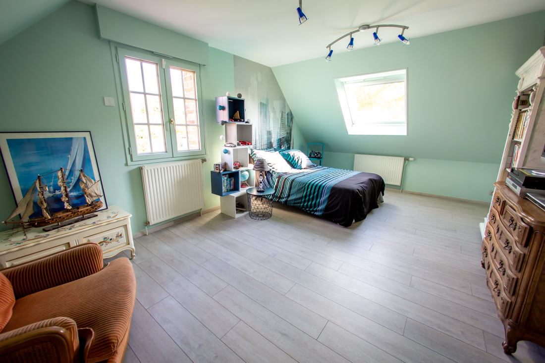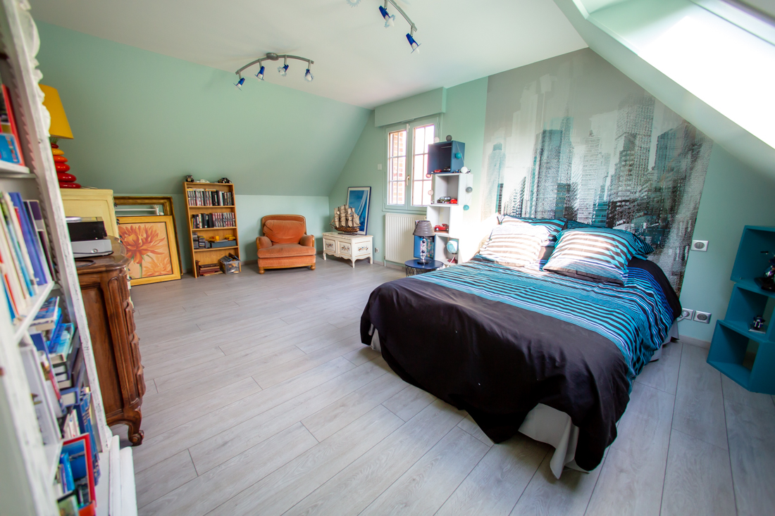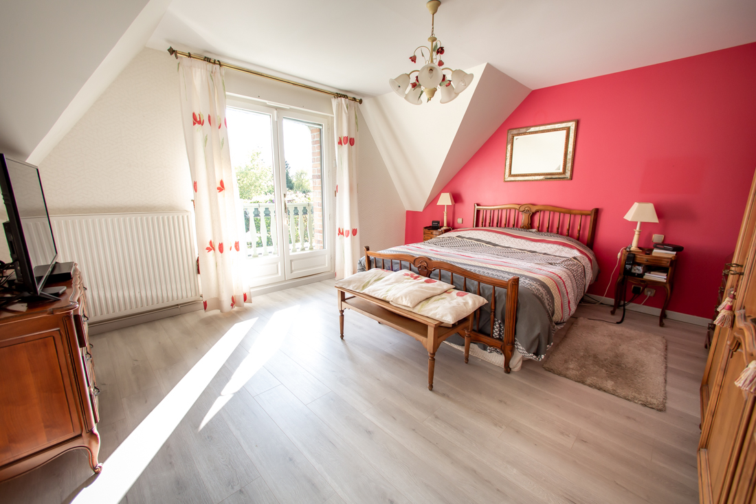 – Étage : palier desservant 4 chambres spacieuse dont une avec balcon et salle de bain privative ; bureau ; salle de douche ; buanderie ; WC